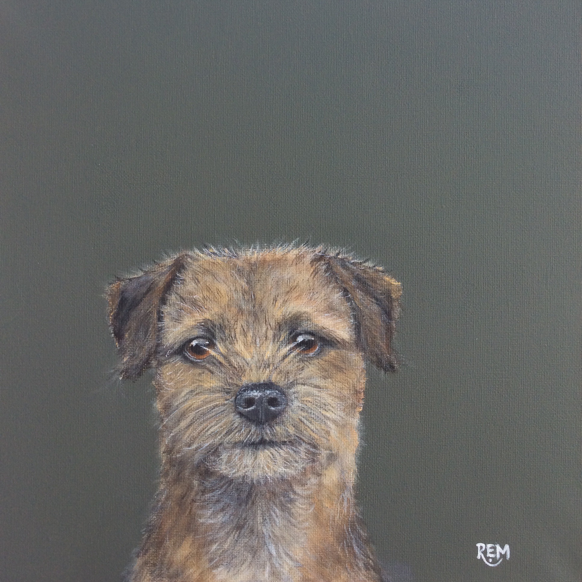 This painting was started a year or two back and I thought it was finished, but having worked on it again today, I realised it wasn’t. Always worth going back to something you’re not sure about with a fresh approach. Acrylic on 12 x 12″ canvas. (He’s also now got a determined look in his eye!)