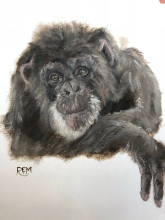 Been a wee while since my last blog so thought I’d share the latest little oil study of a Chimpanzee at Edinburgh Zoo, who I couldn’t walk past without taking a few photos.