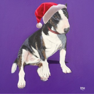 Following a change of mind with one of my paintings, I recently took the plunge to swap a safe sky blue colour for a bold purple (my favourite!) colour.  I think it makes the subject – a hunk of English Bull Terrier – ‘pop’ forward now.  I love subtle, gentle background colours, but just now and again I like to go a bit bananas!  See what you think. 🤓