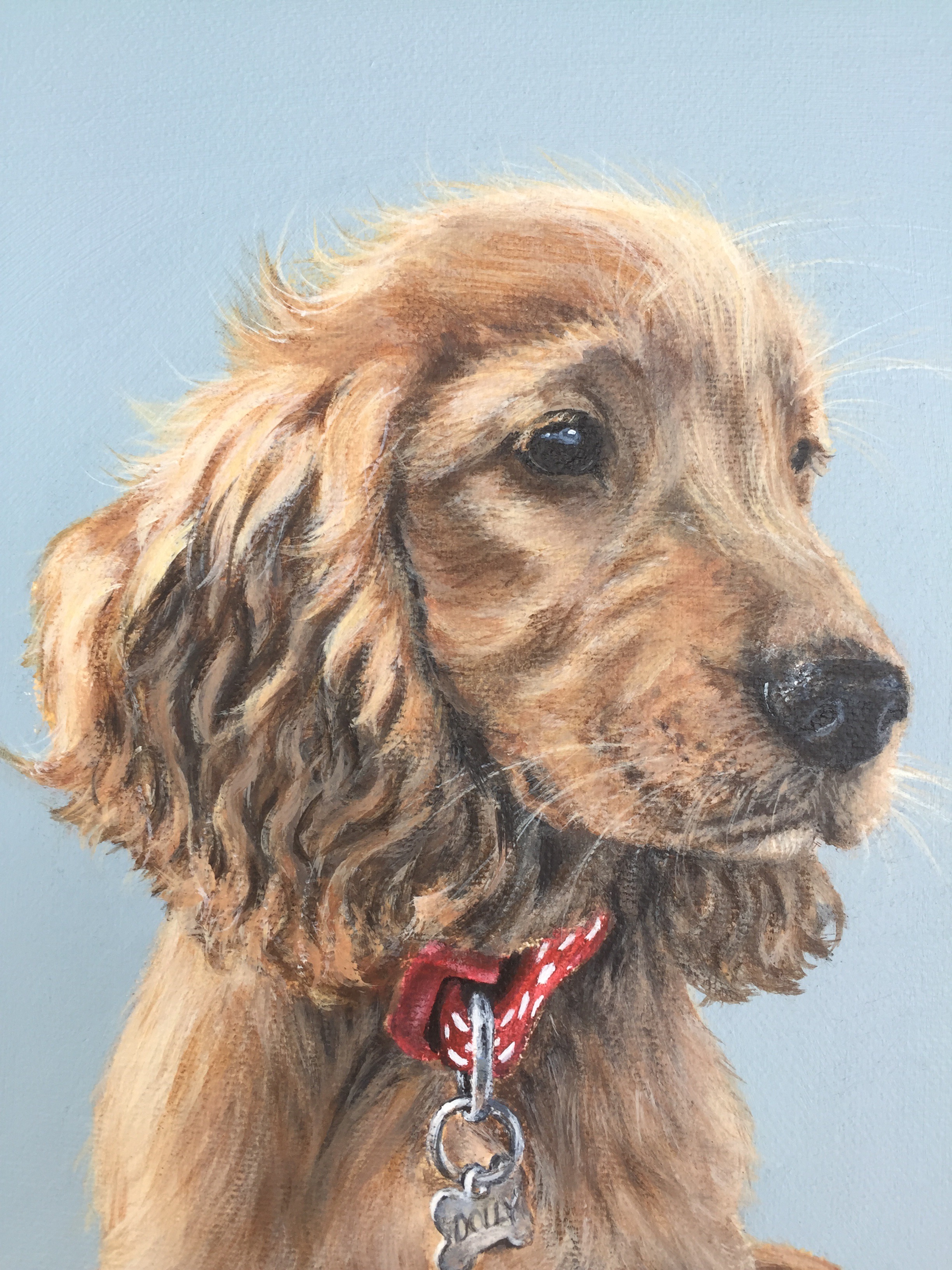 Here’s a photo of a recent commission of Dolly, a young golden cocker spaniel who was a delight to paint.