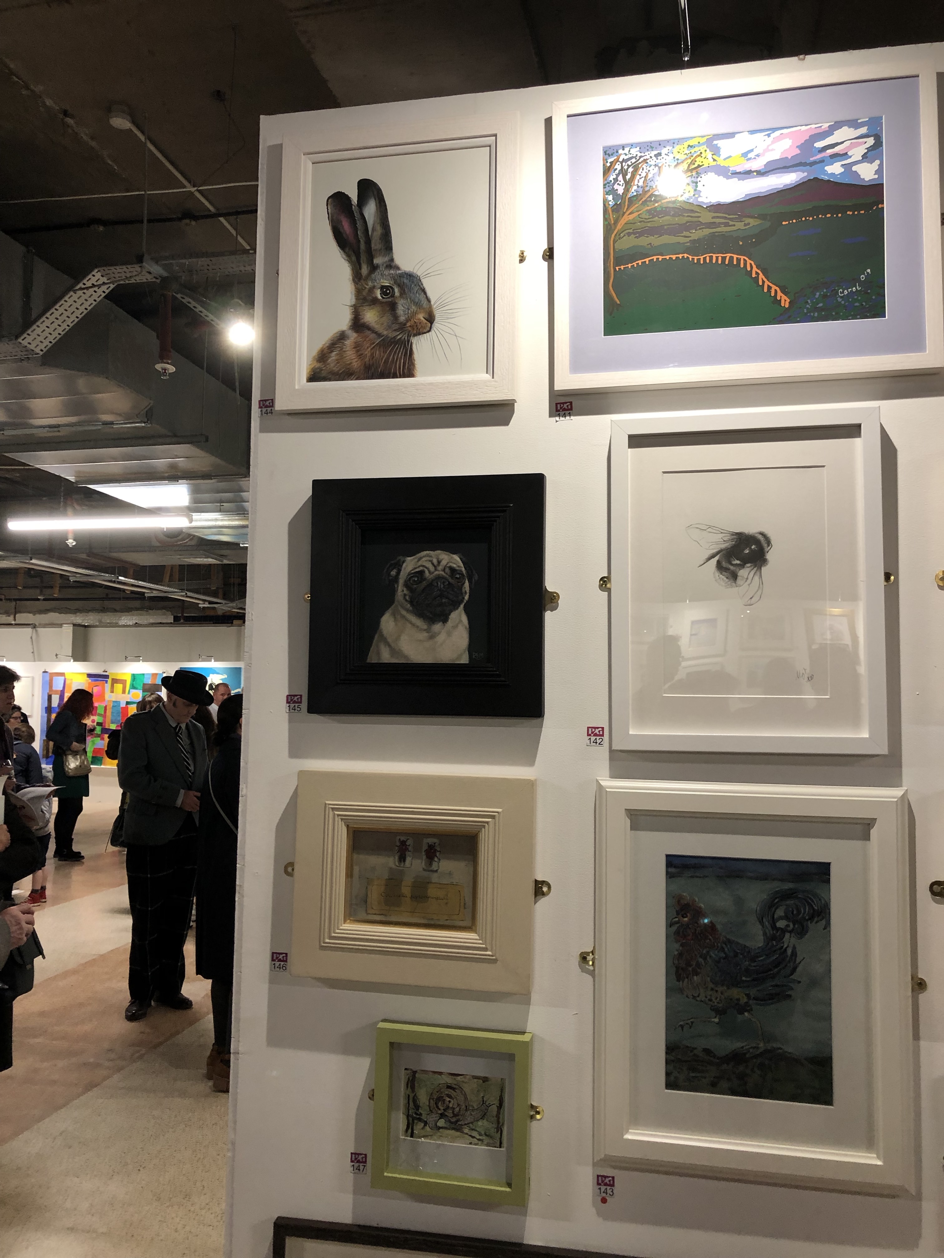 I was delighted to spot my little pug, sharing wall space with other small paintings by artists I greatly admire.  I hope he enjoys his time at this exhibition and maybe, just maybe, he might be lucky enough to find a new home.