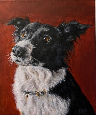 I think this young Border Collie has become something of a muse – I have painted this lovely face several times, because of the expression and those wonderful orange eyes. The reference photo came out nice and sharp and the colours were bright – always a bonus.
